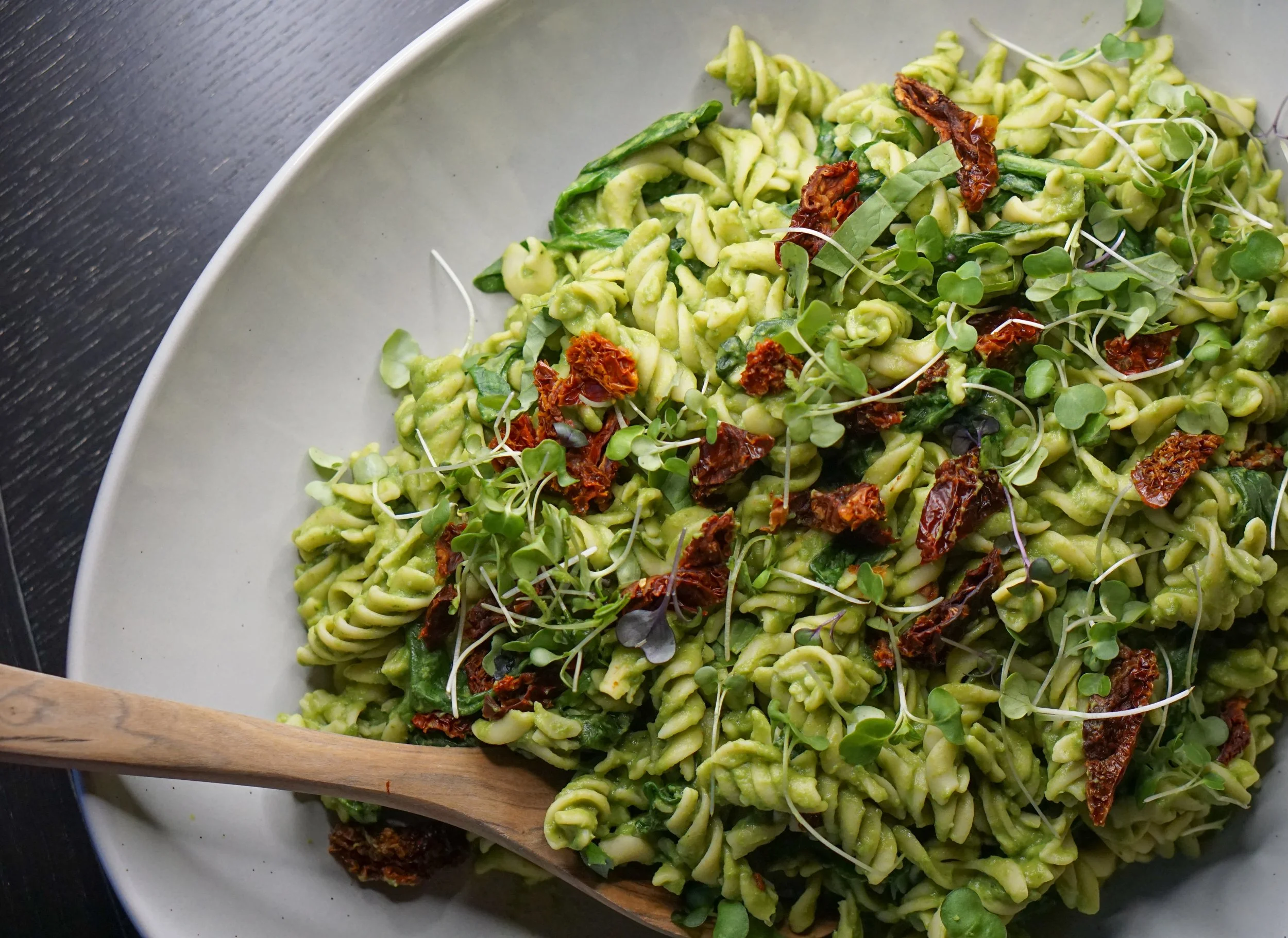 Pea Pesto Pasta w/ Sundried Tomatoes